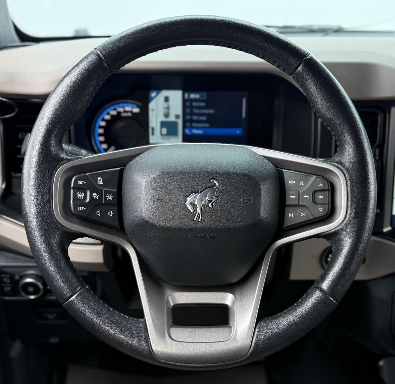 - Leather-Wrapped Steering Wheel with Bronco Logo